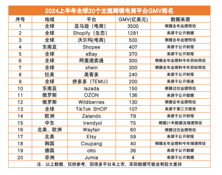 图2:2024年上半年全球主要跨境电商平台规模排名