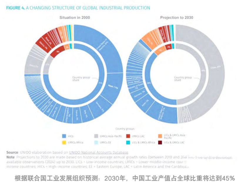 图3:2000-2030(预测)全球主要国家工业产值占比